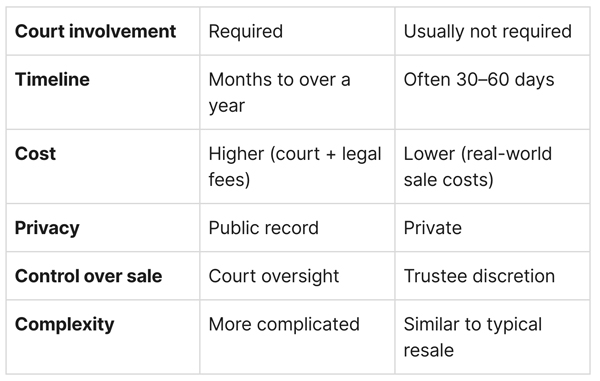 This comparison shows why many families find trust sales less stressful and more efficient — especially when paired with experienced estate-sale Realtors and attorneys.